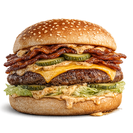 Meso, čedar, hrskava slanina, western sos, iceberg