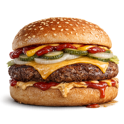Juneće meso, čedar, kečap, senf, luk, krastavac