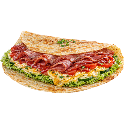 Juneće meso, mladi kajmak, iceberg, miročki sir, čedar, slanina, krastavčići