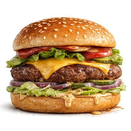 Juneće meso, čedar, burger sos, iceberg, luk, krastavac